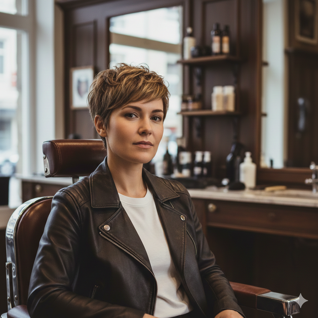 Corte profissional para cabelos curtos femininos, modelado para destacar o estilo e a personalidade da cliente.